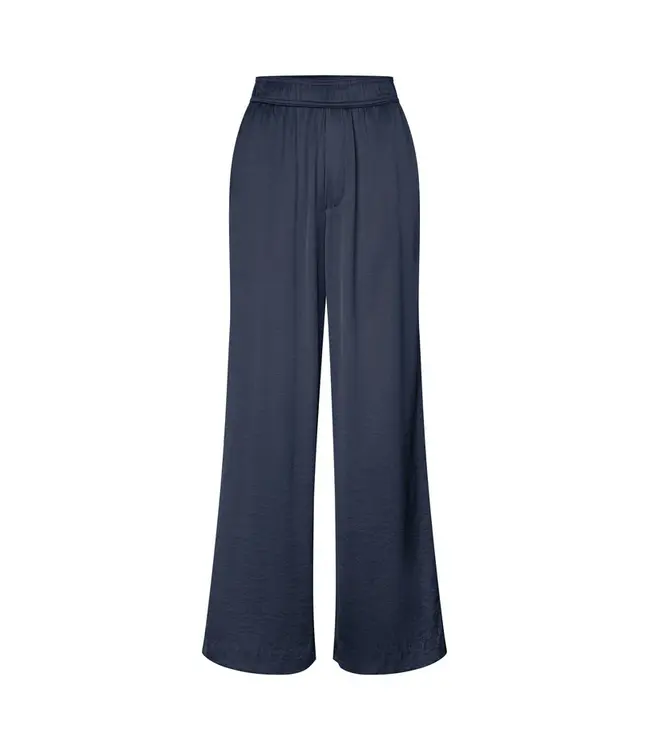 Wijde satijnen broek met elastiek in de taille.