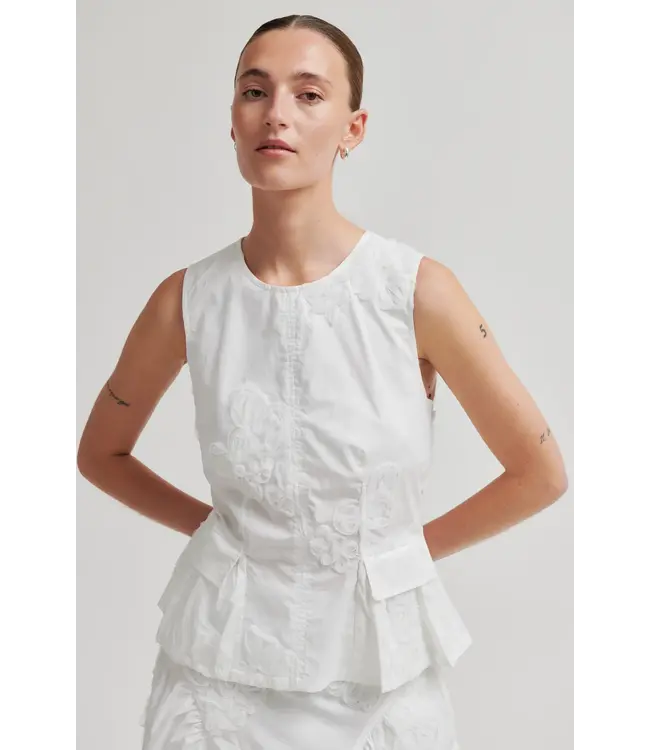 Top van Second Female met 3D-bloemen. De top is gemaakt van lichtgewicht biologisch katoen en voorzien van 3D-bloemendetails van mesh. Met een ronde hals en een ritssluiting aan de achterkant. Lees meer.
