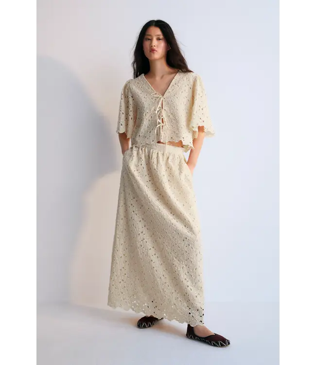 De Atenea Woman Rok is een veelzijdig en elegant stuk, gemaakt van een katoenmix in een delicate macadamia-tint. Ontworpen met een comfortabele elastische tailleband, biedt deze rok zowel stijl als gemak, waardoor het ideaal is voor warme dagen.