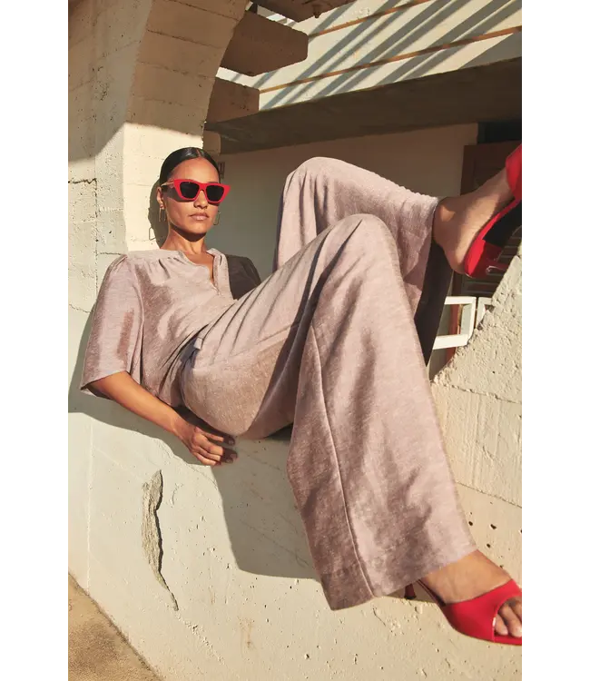 Maak kennis met de benji gloss pants! Deze elegangte broek met een hoge taille en rechte pasvorm biedt ultiem comfort met een elastieken band. De lange lengte en de mellow rose kleur geven je outfit een elegante look.