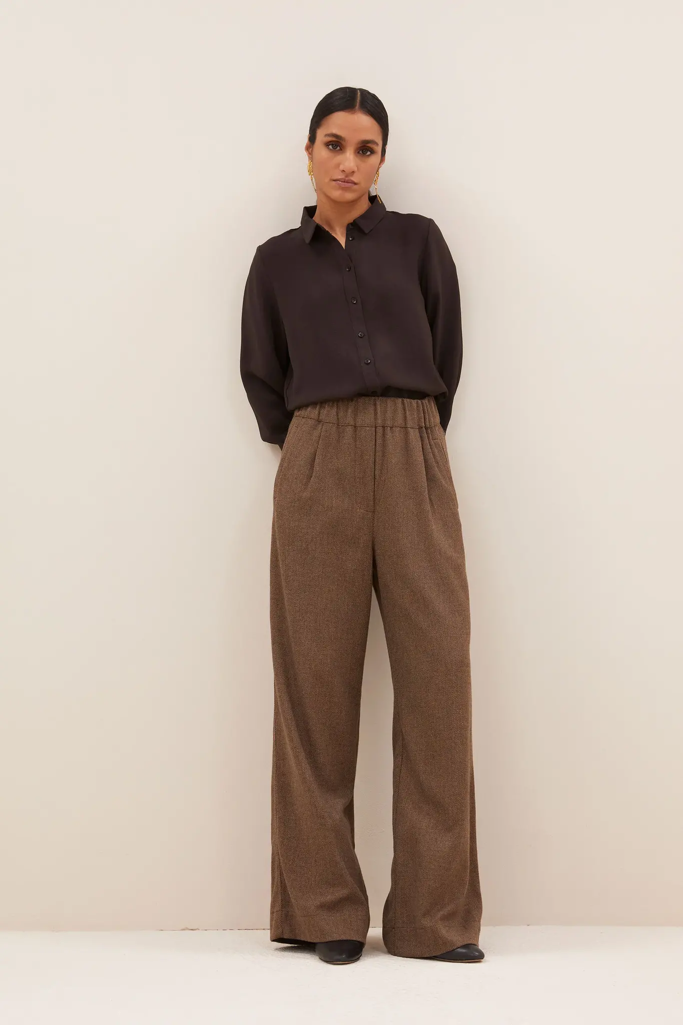 Ontdek het comfort van de benji tweed pants, perfect voor een casual look met een losvallende pasvorm die moeiteloos beweegt. Dankzij de elastieken band en steekzakken geniet je van gemak en stijl in één.