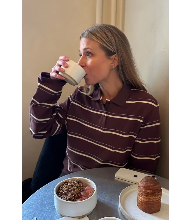 De polo is gemaakt van zacht katoenen stretch met all-over horizontale strepen. De polo heeft een geribde polokraag, knoopsluiting aan de voorkant en een geborduurd ton-sur-ton logo op de borst. Licht afgezakte schouders en lange mouwen. Lees meer.