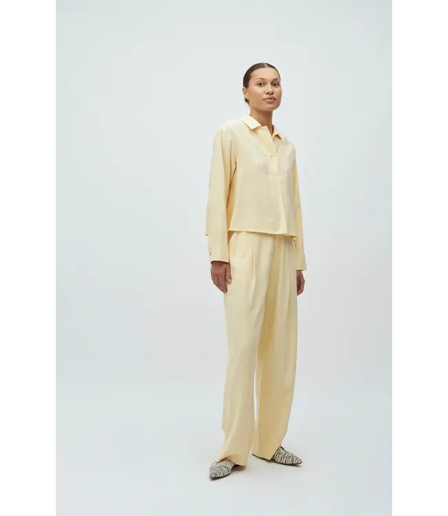 Overhemdblouse met zichtbare knoop.