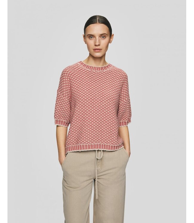 Gebreide trui met een grafisch patroon en losvallende korte mouwen. Afgewerkt met geribde randen bij de hals, mouwen en zoom voor een strakke en moderne look. Een veelzijdig kledingstuk dat zowel bij casual als bij gelaagde outfits past.