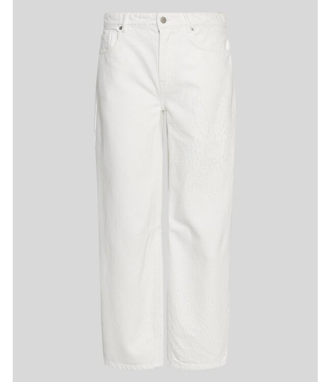 Witte spijkerbroek van stevig katoen. Ontworpen met een klassieke vijf-zakkenconstructie, riemlussen en een sluiting met knoop en rits. Rechte pijpen met een relaxed silhouet. Borduurdetails in dezelfde kleur op de pijpen.