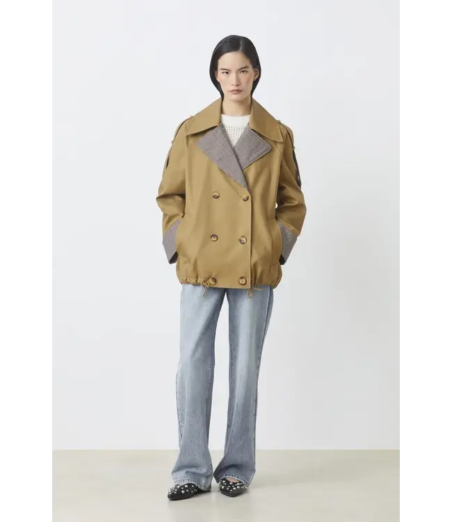 Deze gevoerde trenchcoat met ruitjesmotief is voorzien van een dubbele knoopsluiting en schouderbandjes. Hij heeft twee praktische zijzakken en verstelbare trekkoorden aan de onderkant, zodat je de pasvorm eenvoudig kunt aanpassen. Lees meer.