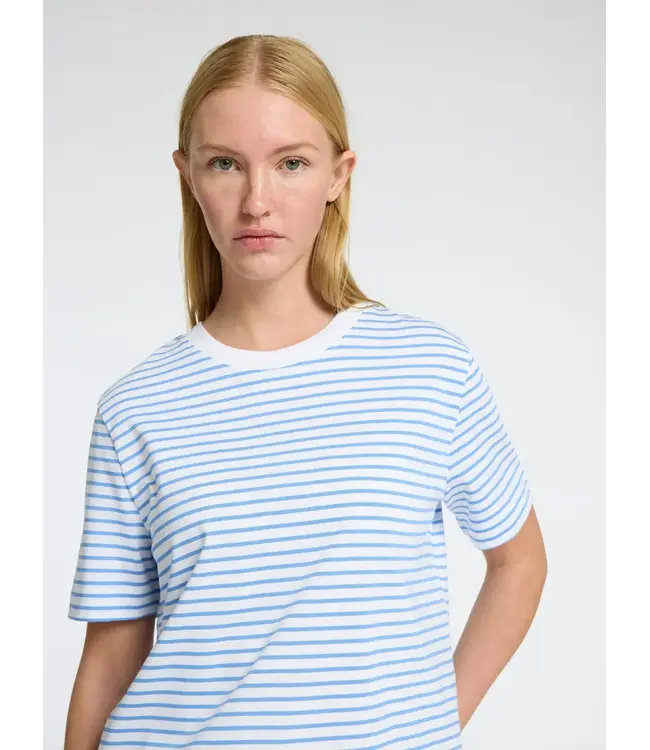 Strepen zijn altijd een goed idee. Dit T-shirt met strepen heeft een klassieke ronde halslijn en korte mouwen, en is gemaakt van zacht, ademend biologisch katoen. Draag met van alles, van een jeans tot een minirok.