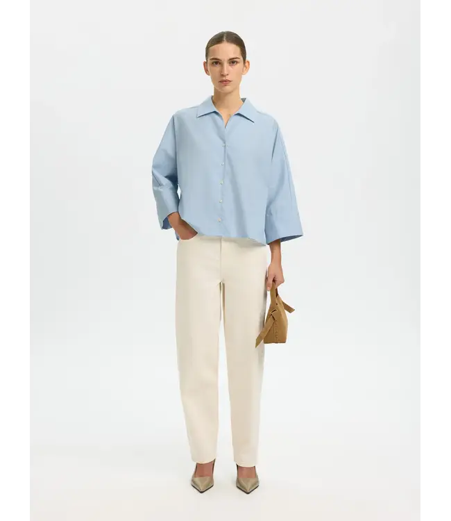 Selected Femme Ester Oversize 3/4 Shirt Cashmere Blue