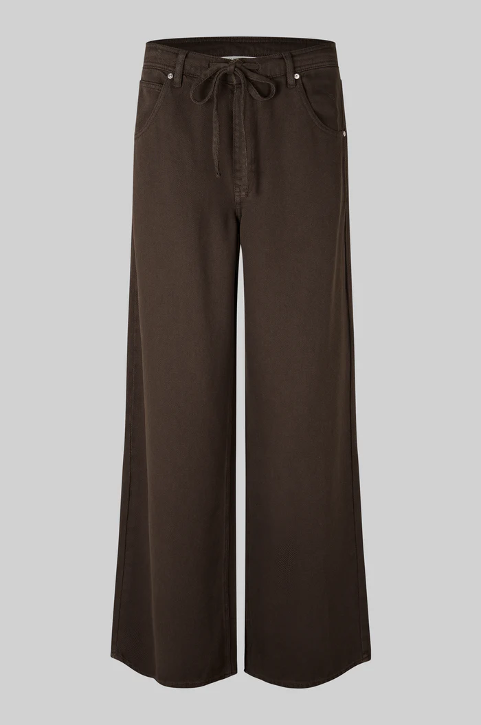 Drapy jeans met riem. De jeans is gemaakt van zacht en soepel vallend lyocell met ton-sur-ton stiksels. Voorzien van een verborgen ritssluiting en knoop aan de voorkant en een trekkoord met strikband in de taille. Vijfzakmodel.
