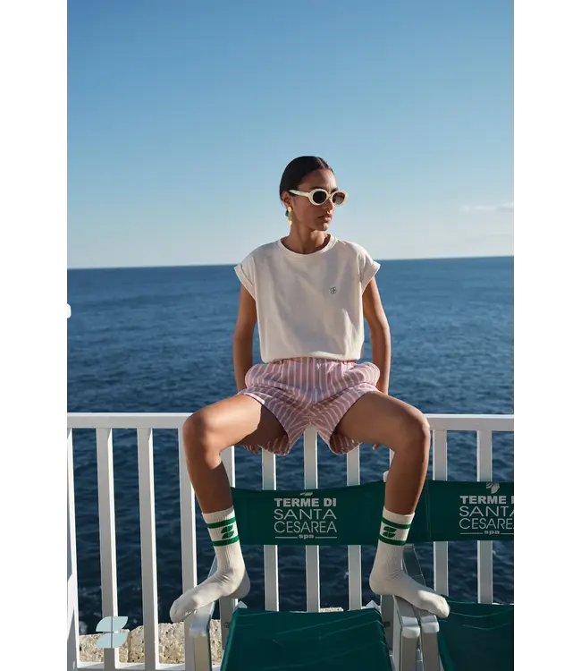 De june stripe shorts combineert een feestelijke stijl met een comfortabele pasvorm. Deze short met mid waist en zijzakken is perfect voor zonnige dagen. Lees meer.