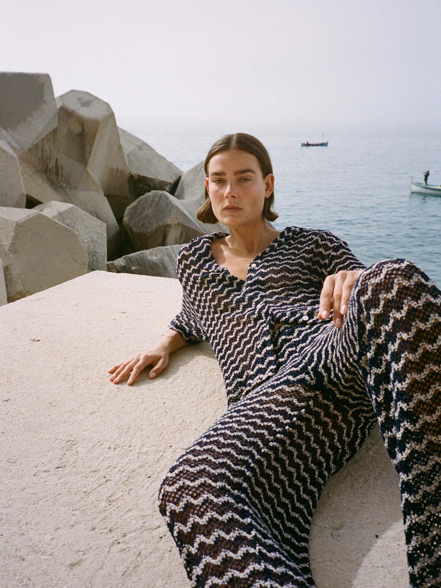 - Het model is 1.81 m en draagt maat 36
