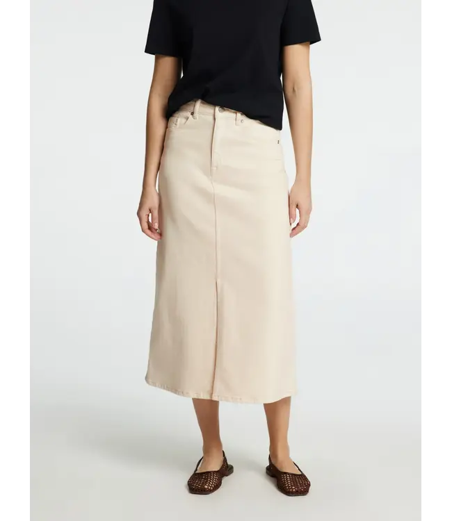 Deze ecru jeansrok is een stijlvolle essential die moeiteloos te combineren is voor zowel een casual als chique look. Met zijn stevige denim stof en tijdloze snit is het een must-have voor elke garderobe. Lees meer.