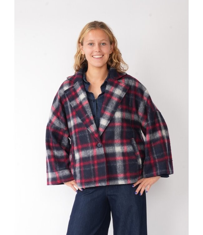 vest met brede revers en brede mouw, 1 knoop sluiting. Polyester/wol