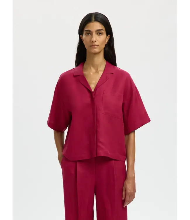 Selected Femme Lyra 2/4 Boxy Linen Blend Shirt Anemone