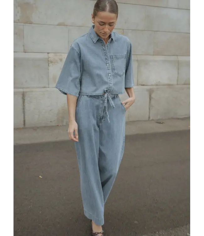 Easy breezy! Deze relaxte jeansbroek met strikdetail aan de taille zit niet alleen als gegoten, maar is ook een echte blikvanger. De lichtblauwe wassing is ideaal om je lentelooks een frisse boost te geven, terwijl het wijde silhouet je benen laat ademen.