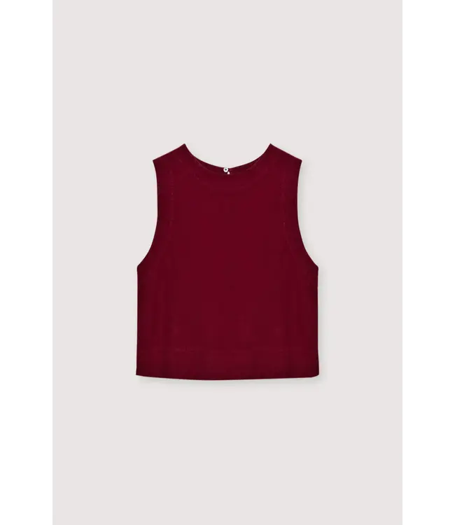 Linnen top met een zachte, delicate afwerking, vervaardigd in Portugal. Voorzien van een sleutelgatopening aan de achterkant met knoopsluiting en verkrijgbaar in verschillende kleuren, perfect te combineren met andere stukken uit de collectie.