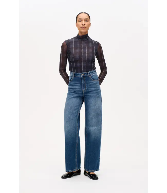 De Nini Jeans is een relaxte favoriet met een stoere gewassen afwerking en opvallende corduroy achterzakken. De denim jeans heeft een hoge taille, wijde pijpen en een relaxte, licht elastische pasvorm, waardoor hij een stoere en casual uitstraling heeft.