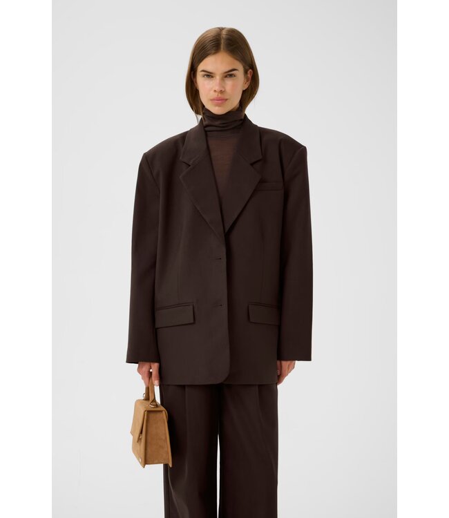 Deze op maat gemaakte blazer voor dames heeft een relaxte pasvorm, een klassieke reverskraag en een sluiting met twee knopen. Hij is ontworpen met rechte mouwen en klepzakken en biedt veelzijdige styling voor zowel werk- als casual outfits.