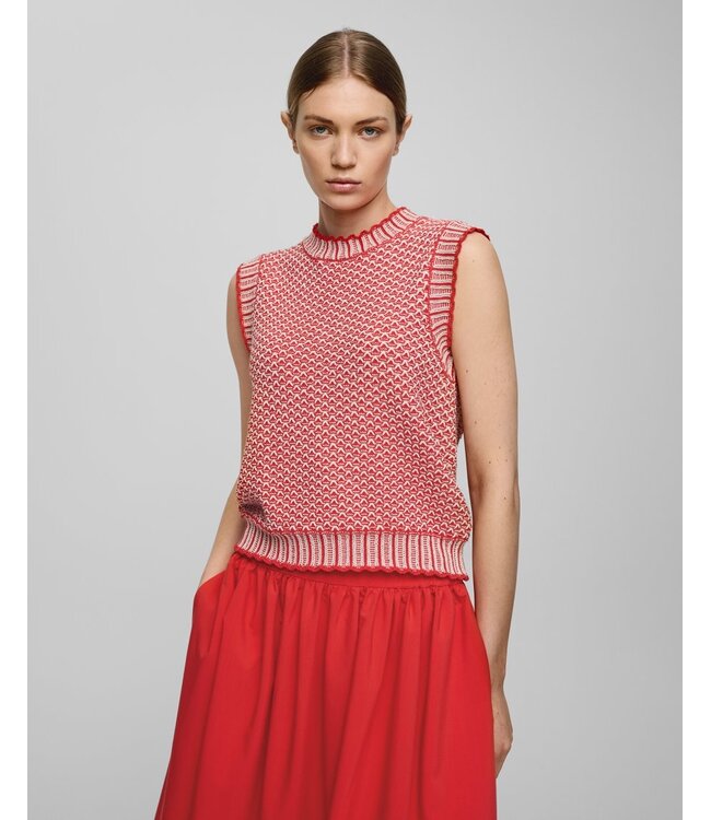 Het Pilla vest is een dubbel gekleurd, gebreid vest, in een uniek patroon. Het vest kan gestyled worden als een op zichzelf staande top voor een eigentijdse look of gebruikt worden bovenop een t-shirt of shirt voor een meer klassieke look.