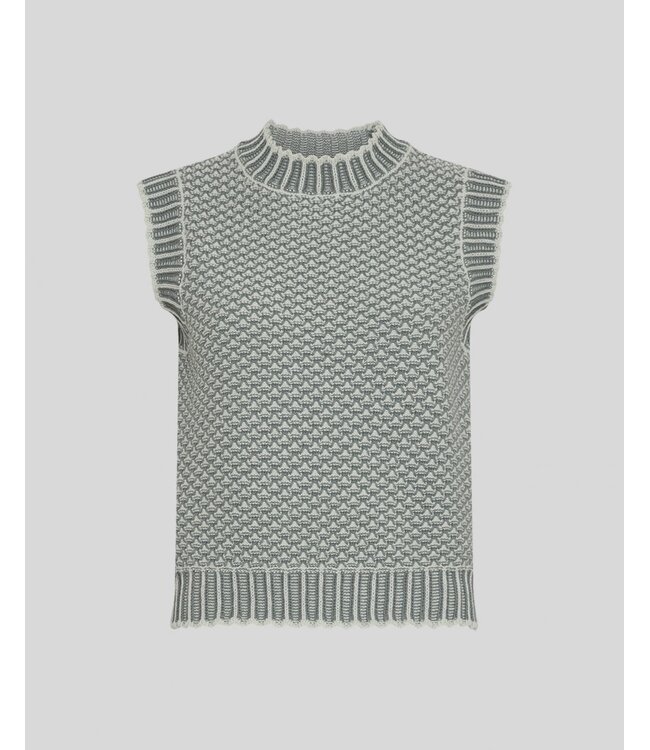 Gebreid vest met tweekleurig patroon. Geribde halslijn, geribde zoom en mouwloze zijkanten. Normale pasvorm. Lees meer.