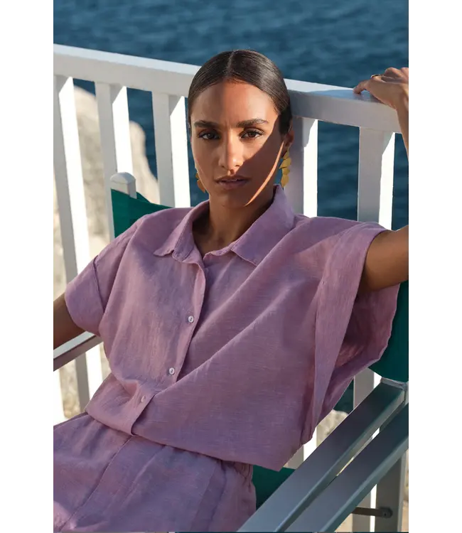 De pixie linen blouse is een casual top met een comfortabele normale pasvorm en korte mouwen. Dankzij de klassieke kraag en knoopsluiting is deze blouse eenvoudig te combineren voor een stijlvolle, ontspannen look.