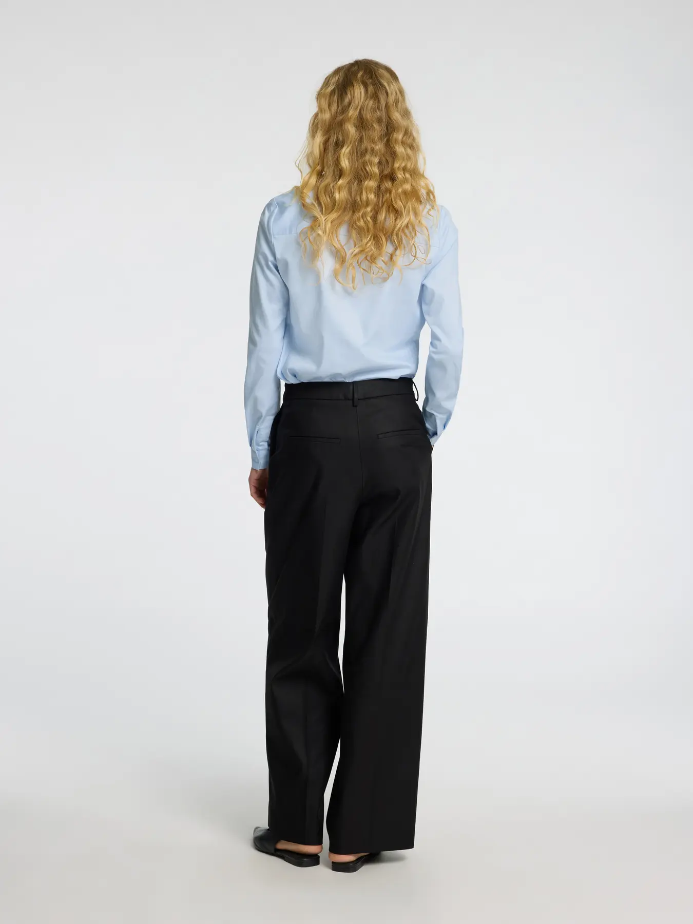 Deze nauwsluitende blouse is een echte must-have. Hij is gemaakt van biologisch katoen en heeft een slim fit, waardoor je hem gemakkelijk onder een trui of blazer kunt dragen. Wij zouden hem combineren met een wide-leg broek en ballerina's voor kantoor.