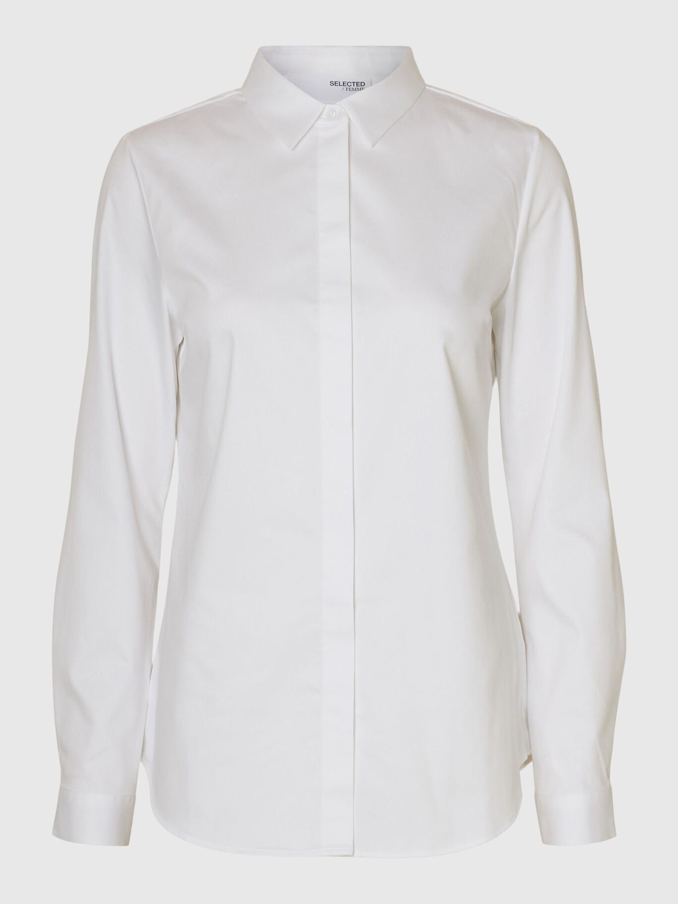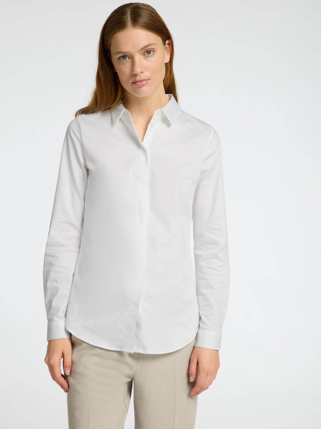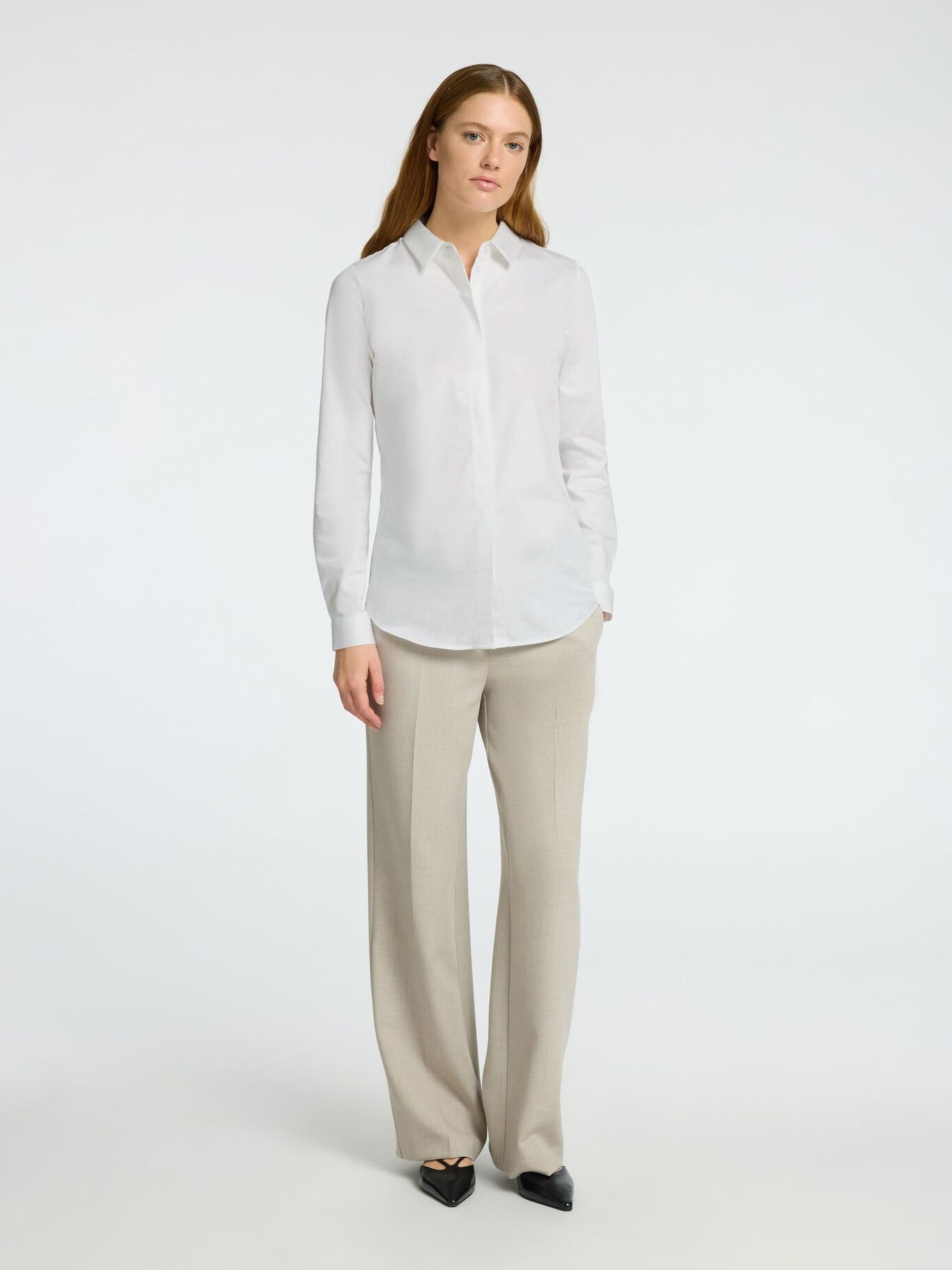 Deze nauwsluitende blouse is een echte must-have. Hij is gemaakt van biologisch katoen en heeft een slim fit, waardoor je hem gemakkelijk onder een trui of blazer kunt dragen. Wij zouden hem combineren met een wide-leg broek en ballerina's voor kantoor.