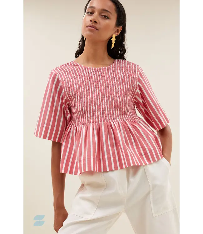 Ontdek de runa stripe top, een casual top met een aansluitende pasvorm die je figuur mooi benadrukt. Dankzij de ronde halslijn en korte mouwen is deze top ideaal voor een ontspannen, stijlvolle look die je moeiteloos combineert met elke outfit.