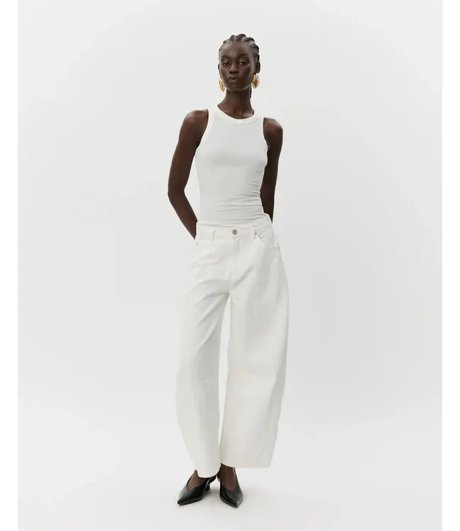Barrel fit met een mid waist pasvorm, gemaakt van 100% katoen. Voorzien van een klein geborduurd logo op de achterzak; het model is 177 cm en draagt maat S. Lees meer.