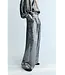Deze rechte broek is gemaakt van een glanzende zilverkleurige stof en voegt moderne elegantie toe aan elke garderobe. De plooien aan de voorkant zorgen voor een slank, langgerekt silhouet, terwijl de zijzakken een praktisch tintje toevoegen.