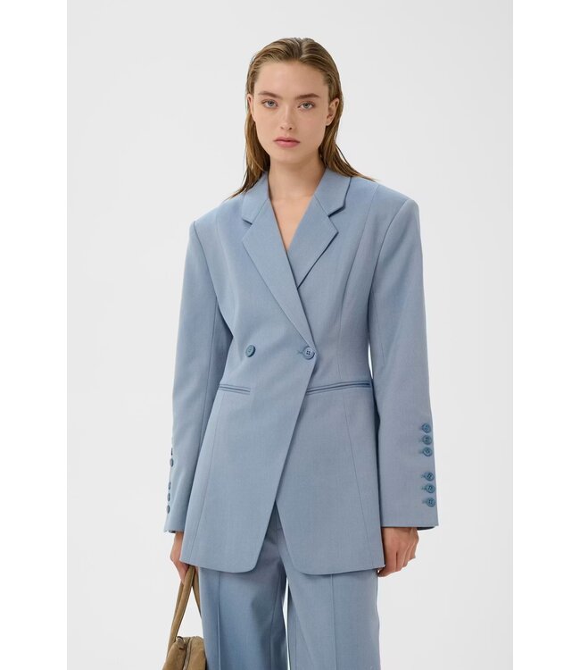 Deze double-breasted blazer heeft een oversized pasvorm, strakke puntige revers en knopen in dezelfde kleur. Hij valt op door zijn gestructureerde schouders, lange mouwen en een gladde, licht matte afwerking. Lees meer.