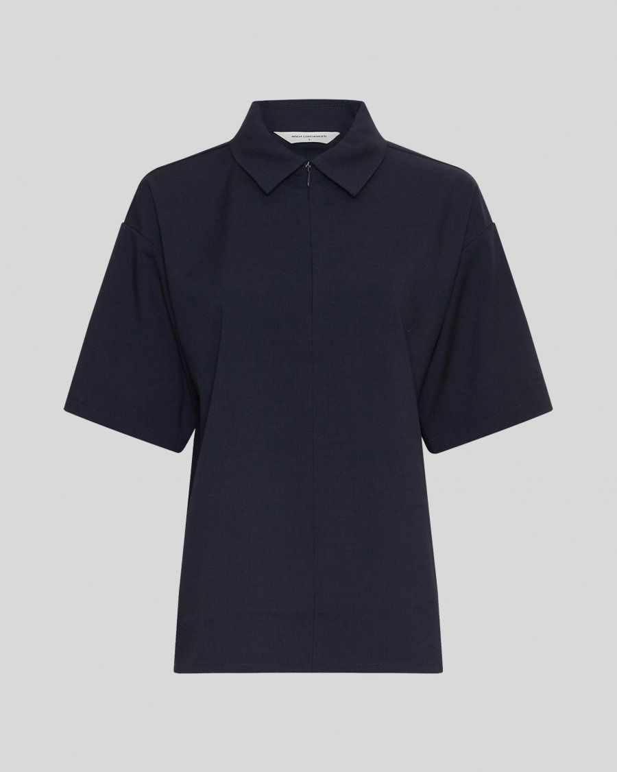 De Wilder 2/4 Top combineert tijdloos design met moderne details. Deze top heeft een boxy pasvorm met een verborgen ritssluiting aan de voorkant en 3/4 mouwen. Hij is ideaal voor zowel casual als formelere gelegenheden.