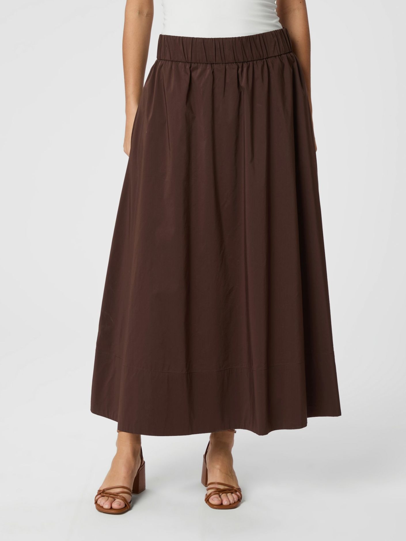 Yara Long Poplin Skirt Chocolate Brown